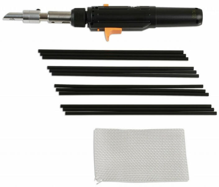 Műanyag hegesztő készlet, amely négy különböző típusú műanyag hegesztő pálcával van kiegészítve, amelyek alkalmasak kisebb törött vagy osztott műanyag alkatrészek, mint például tükrök javítására.